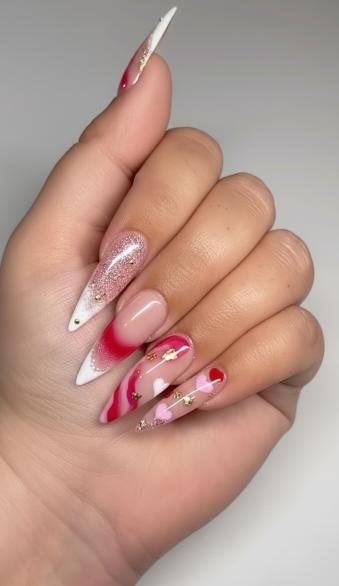 Honestly, stiletto nails are seriously underrated. While square and almond shapes get most of the attention, stiletto nail designs for Valentine’s Day bring a level of drama and impact that other shapes simply can’t.