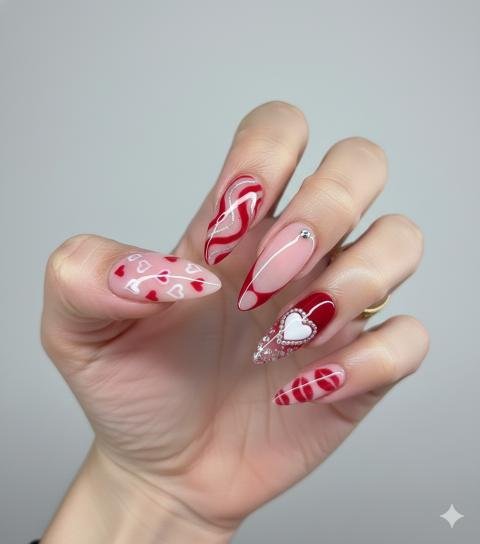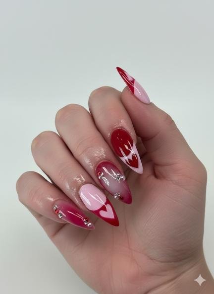For anyone searching for Valentine’s Day stiletto nail ideas, this shape is perfect if you love nails that feel powerful, glamorous, and a little rebellious.