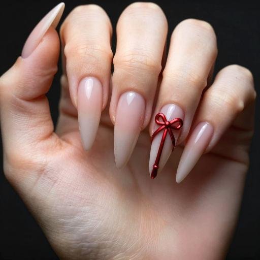 22. Elegant Nude with Delicate Red Ribbon Bow