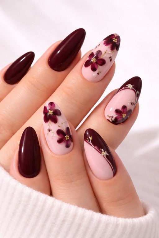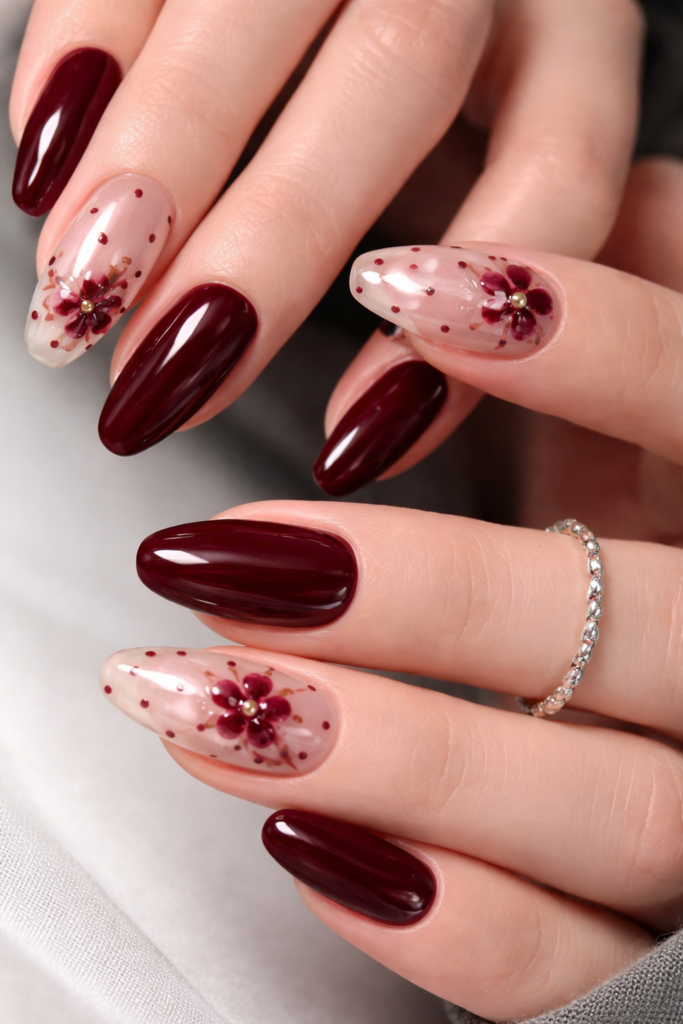I’ve always loved the contrast of dark nails against the brightness of the season; there’s something about a deep plum, a moody olive, or a rich burgundy in springtime that feels unexpectedly right.