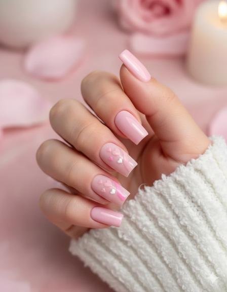 Clean edges, balanced proportions, and a polished finish make square nails the perfect canvas for Valentine’s designs, from soft pink minimalism to bold hearts, French tips, and playful accents.