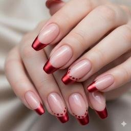 26. Metallic Red Tips with Heart Details
